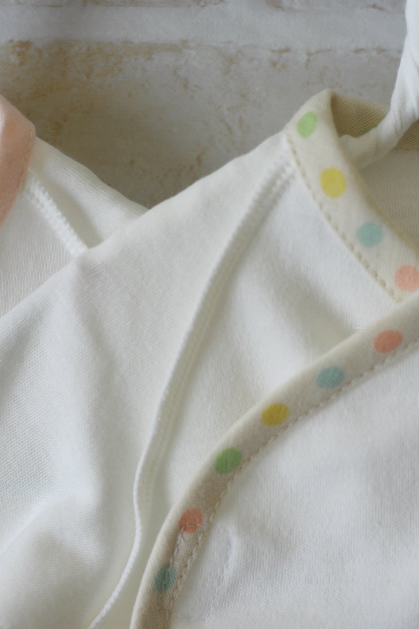 また、赤ちゃんのデリケートなお肌を傷つけないよう外縫い縫製で仕上げました。