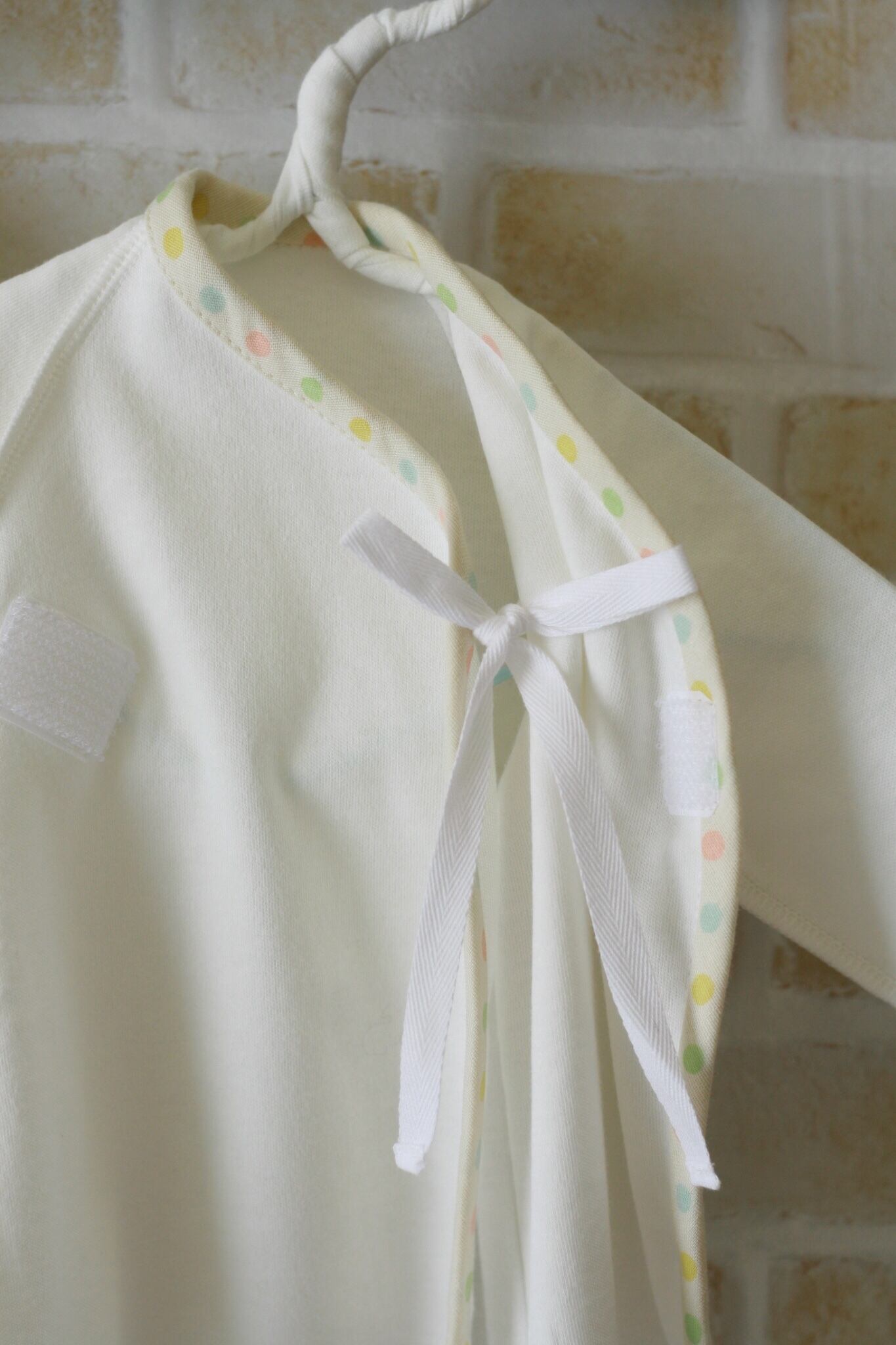 (内側は赤ちゃんの大事なお肌に接してしまうので、ひものままにしてあります)