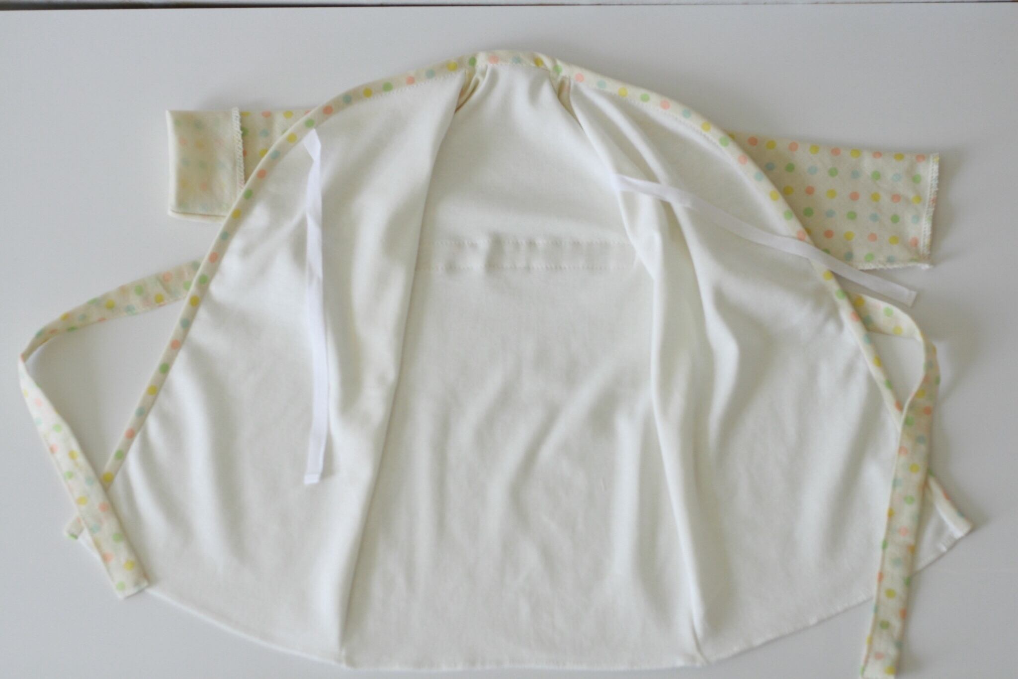 手先の冷えやすいベビーちゃんのために、お袖は長めに作りました。