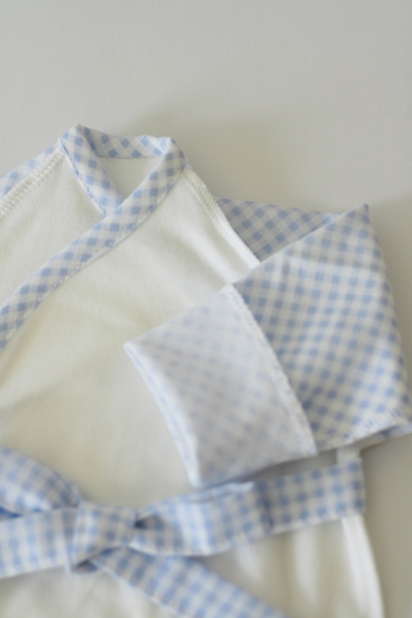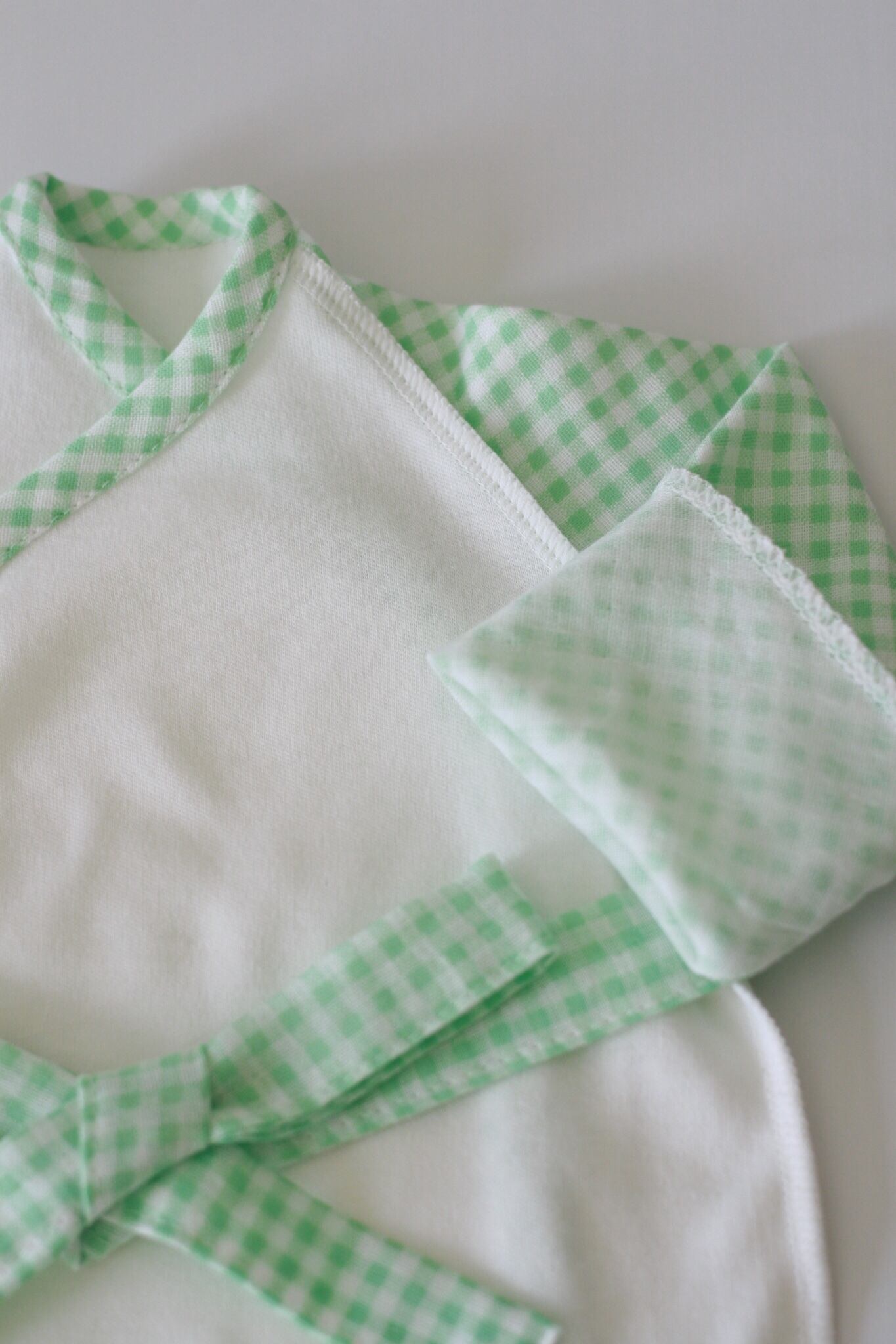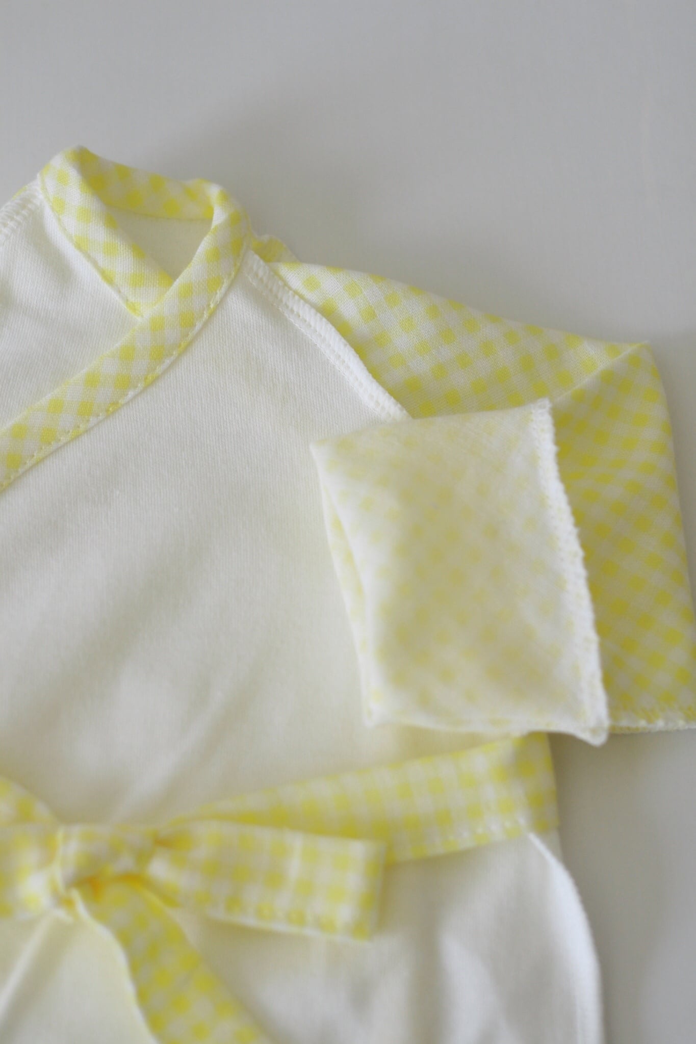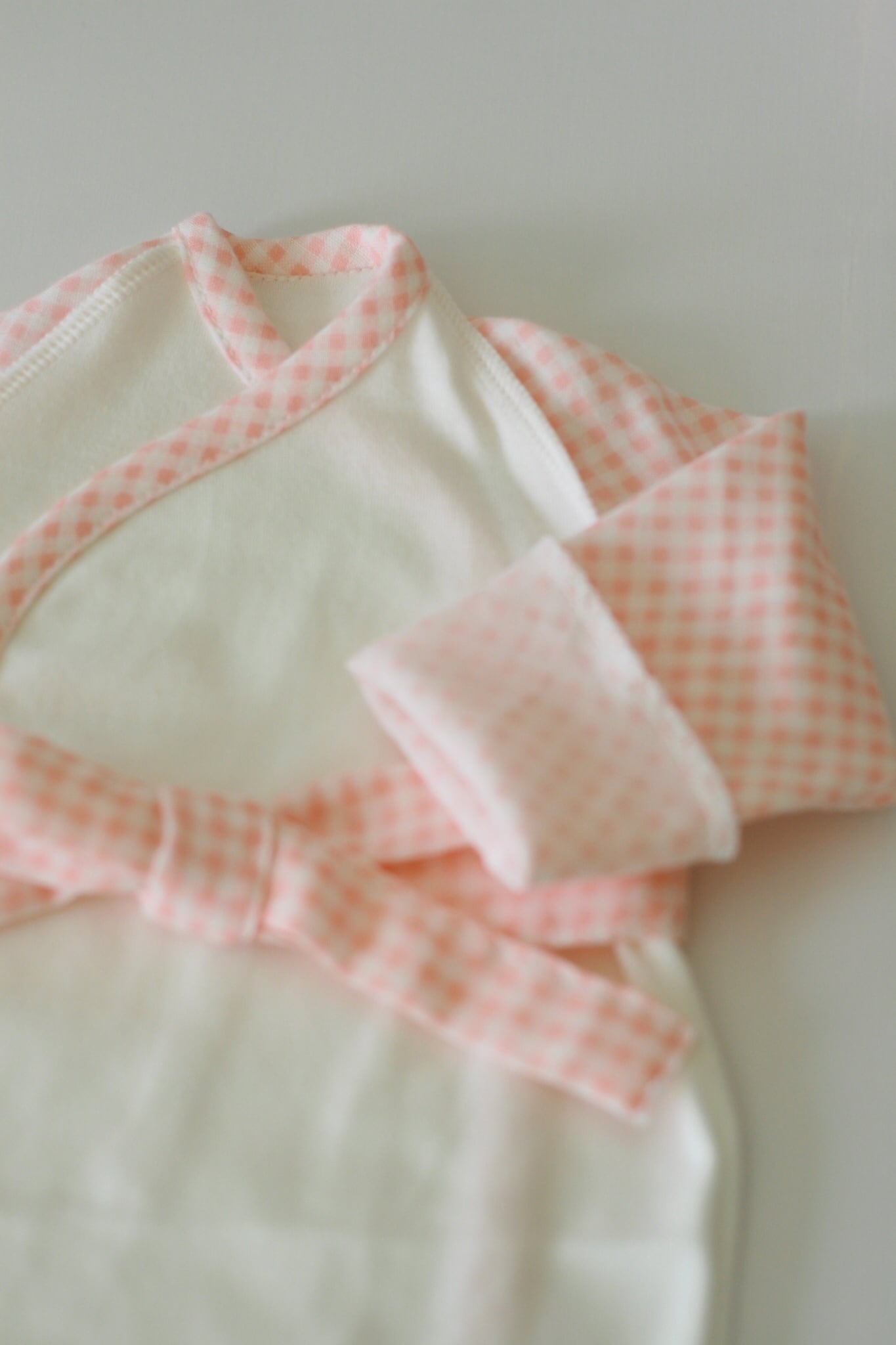 パイピングには淡いカラーのダブルガーゼ生地を使用し、